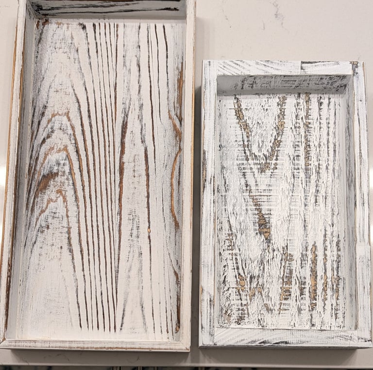 This customer wanted a custom tray to fit napkins (left) that matched the style of other decorator items in their bathroom (right)